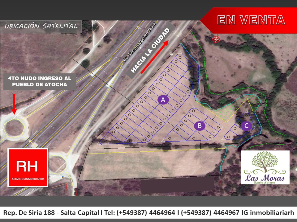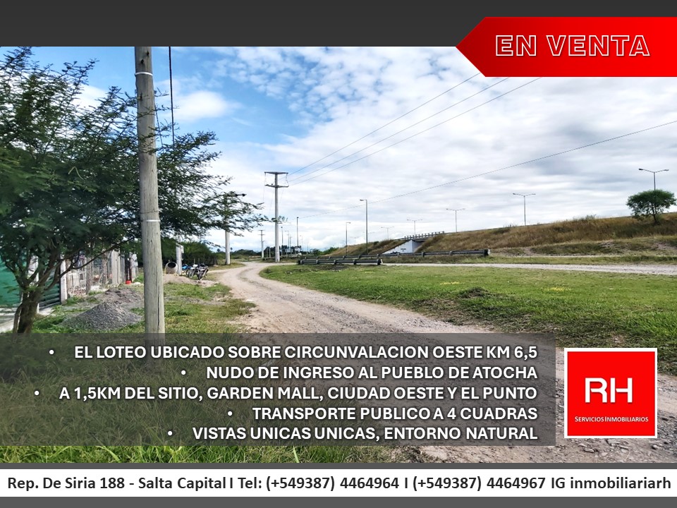 EXCELENTES TERRENOS SOBRE AUTOPISTA CIRCUNVALACION OESTE, BARRIO LAS MORAS (barrio Abierto), ALTURA DEL 4TO NUDO , INGRESO AL PUEBLO DE ATOCHA. ZONA SAN LORENZO CHICO. km 6,5 de la autopista.